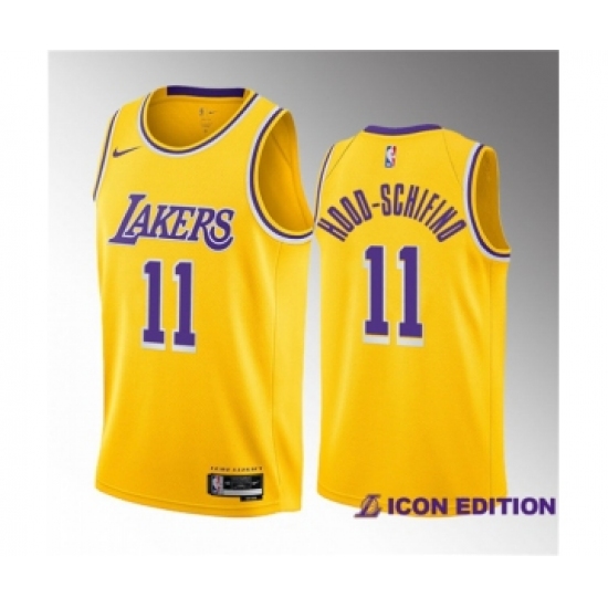 Men's Los Angeles Lakers #11 Jalen Hood-Schifino Yellow 2023 Draft Icon Edition Stitched Basketball Jersey