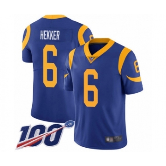 >Men's Los Angeles Rams #6 Johnny Hekker Royal Blue Alternate Vapor Untouchable Limited Player 100th Season Football Jersey