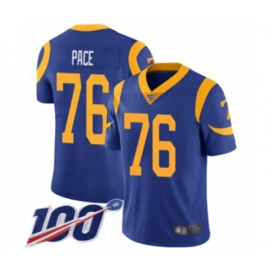 Men's Los Angeles Rams #76 Orlando Pace Royal Blue Alternate Vapor Untouchable Limited Player 100th Season Football Jersey