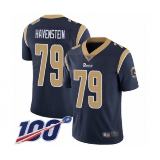 Men's Los Angeles Rams #79 Rob Havenstein Navy Blue Team Color Vapor Untouchable Limited Player 100th Season Football Jersey