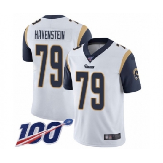 Men's Los Angeles Rams #79 Rob Havenstein White Vapor Untouchable Limited Player 100th Season Football Jersey