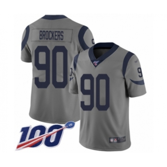 >Men's Los Angeles Rams #90 Michael Brockers Limited Gray Inverted Legend 100th Season Football Jersey