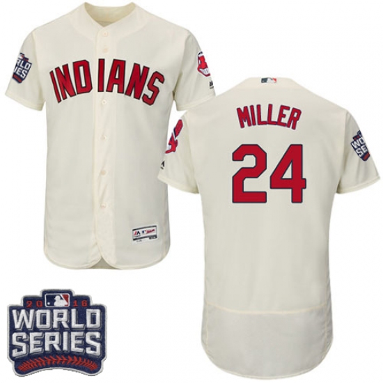 Men's Majestic Cleveland Indians #24 Andrew Miller Cream 2016 World Series Bound Flexbase Authentic Collection MLB Jersey