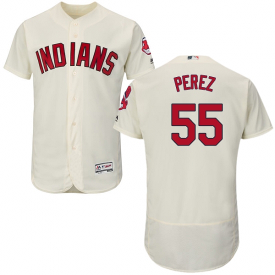 Home>MLB>Cleveland Indians>Roberto Perez>Men's Majestic Cleveland Indians #55 Roberto Perez Cream Flexbase Authentic Collection MLB Jersey