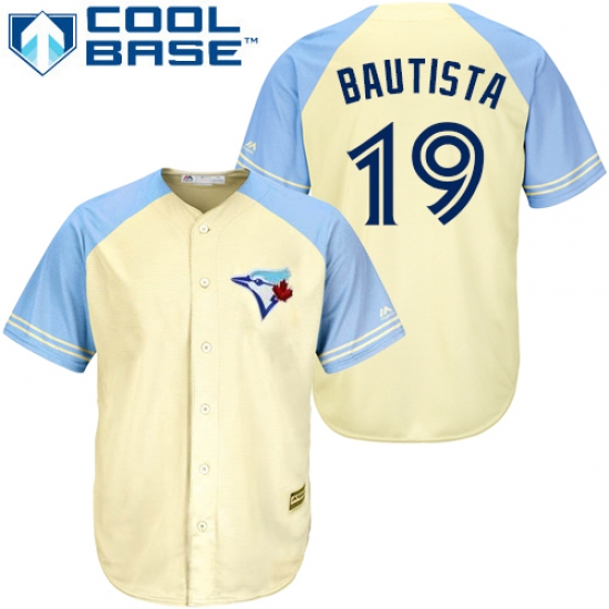Men's Majestic Toronto Blue Jays #19 Jose Bautista Replica Cream Exclusive Vintage Cool Base MLB Jersey