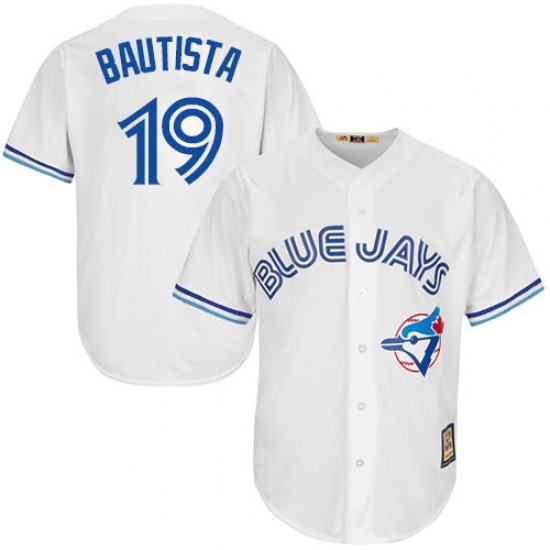 Men's Majestic Toronto Blue Jays #19 Jose Bautista Replica White Cooperstown MLB Jersey