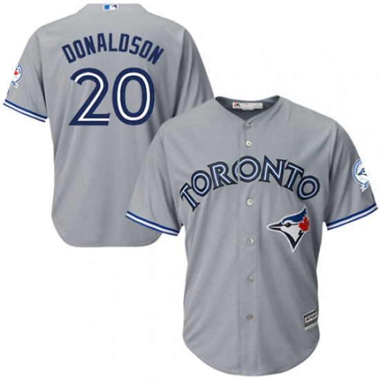 Men's Majestic Toronto Blue Jays #20 Josh Donaldson Replica Grey Road 40th Anniversary Patch MLB Jersey