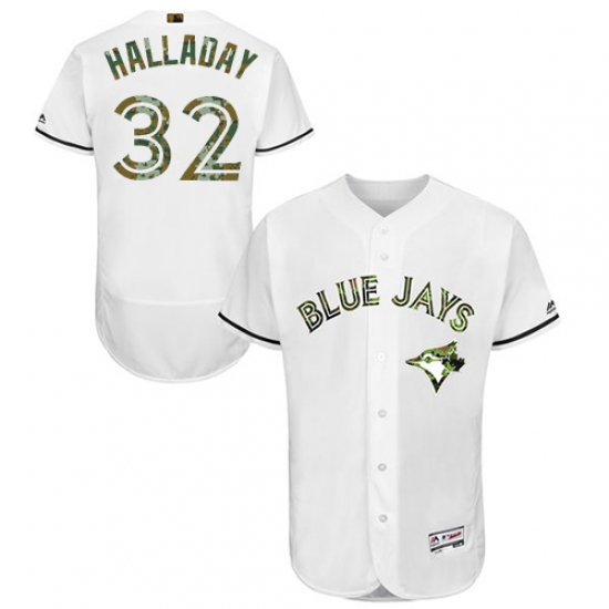 Home>MLB>Toronto Blue Jays>Roy Halladay>Men's Majestic Toronto Blue Jays #32 Roy Halladay Authentic White 2016 Memorial Day Fashion Flex Base MLB Jersey