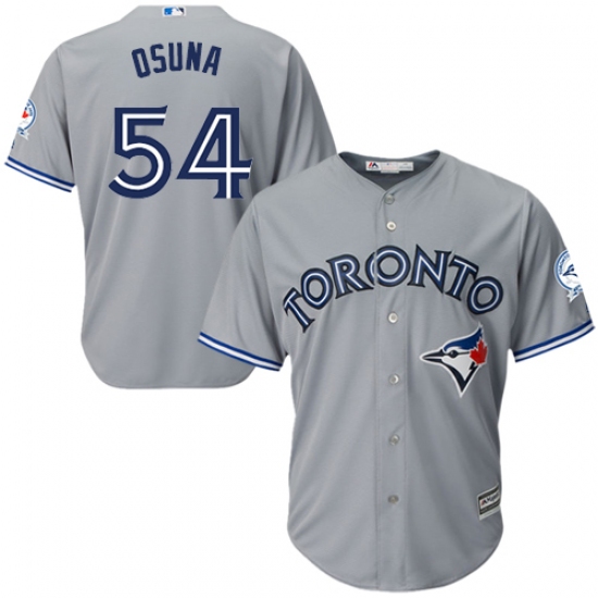 Men's Majestic Toronto Blue Jays #54 Roberto Osuna Replica Grey Road 40th Anniversary Patch MLB Jersey