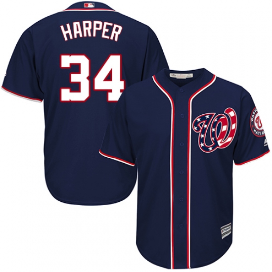 Home>MLB>Washington Nationals>Bryce Harper>Men's Majestic Washington Nationals #34 Bryce Harper Replica Navy Blue Alternate 2 Cool Base MLB Jersey