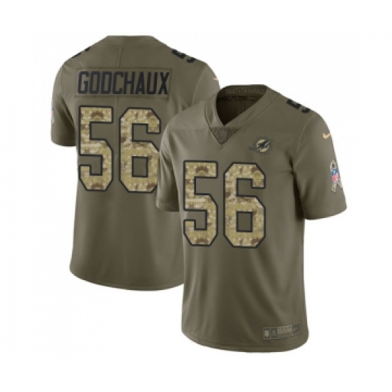 >Men's Miami Dolphins #56 Davon Godchaux Limited Olive Camo 2017 Salute to Service Football Jersey