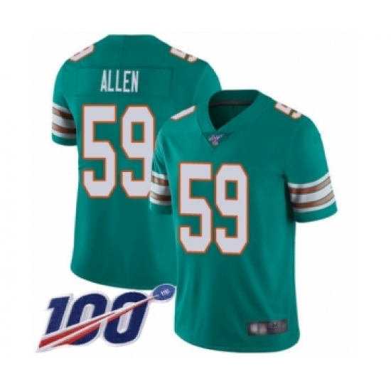 Men's Miami Dolphins #59 Chase Allen Aqua Green Alternate Vapor Untouchable Limited Player 100th Season Football Jersey
