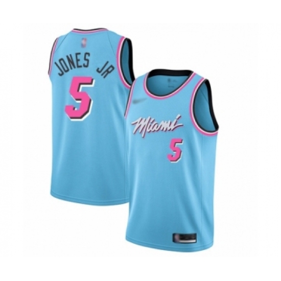 >Men's Miami Heat #5 Derrick Jones Jr Swingman Blue Basketball Jersey - 2019-20 City Edition