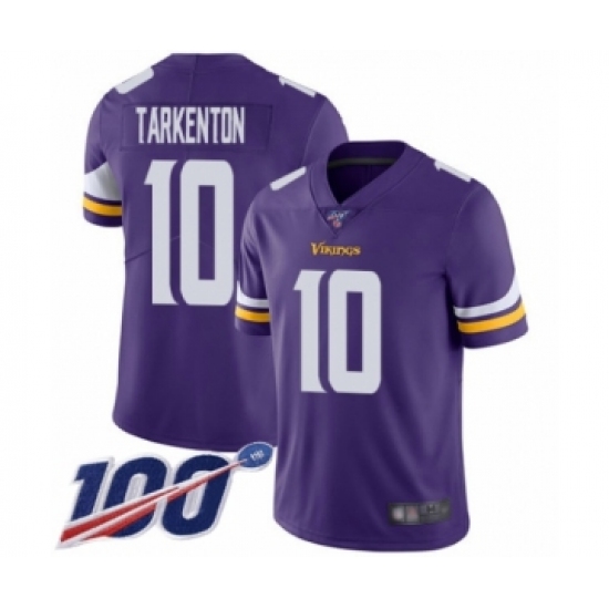 >Men's Minnesota Vikings #10 Fran Tarkenton Purple Team Color Vapor Untouchable Limited Player 100th Season Football Jersey
