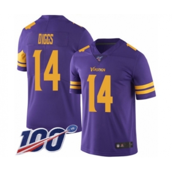 >Men's Minnesota Vikings #14 Stefon Diggs Limited Purple Rush Vapor Untouchable 100th Season Football Jersey