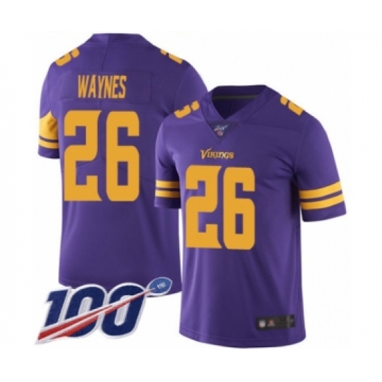 >Men's Minnesota Vikings #26 Trae Waynes Limited Purple Rush Vapor Untouchable 100th Season Football Jersey
