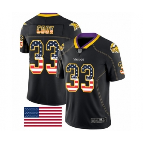 >Men's Minnesota Vikings #33 Dalvin Cook Limited Black Rush USA Flag Football Jersey