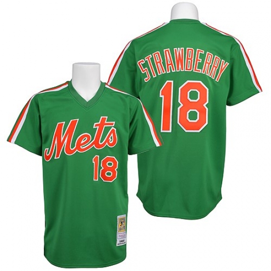 Home>MLB>New York Mets>Darryl Strawberry>Men's Mitchell and Ness New York Mets #18 Darryl Strawberry Replica Green Throwback MLB Jersey