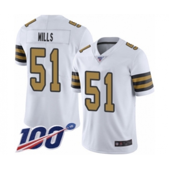 >Men's New Orleans Saints #51 Sam Mills Limited White Rush Vapor Untouchable 100th Season Football Jersey