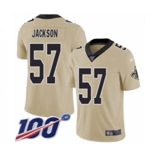 >Men's New Orleans Saints #57 Rickey Jackson Limited Gold Inverted Legend 100th Season Football Jersey