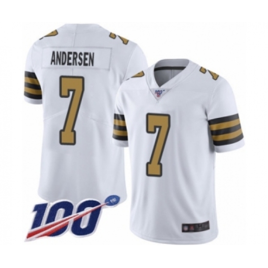>Men's New Orleans Saints #7 Morten Andersen Limited White Rush Vapor Untouchable 100th Season Football Jersey