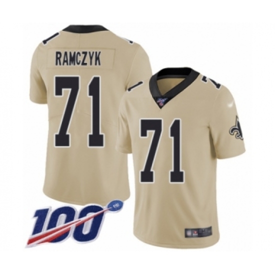 Men's New Orleans Saints #71 Ryan Ramczyk Limited Gold Inverted Legend 100th Season Football Jersey