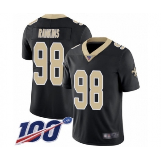 >Men's New Orleans Saints #98 Sheldon Rankins Black Team Color Vapor Untouchable Limited Player 100th Season Football Jersey