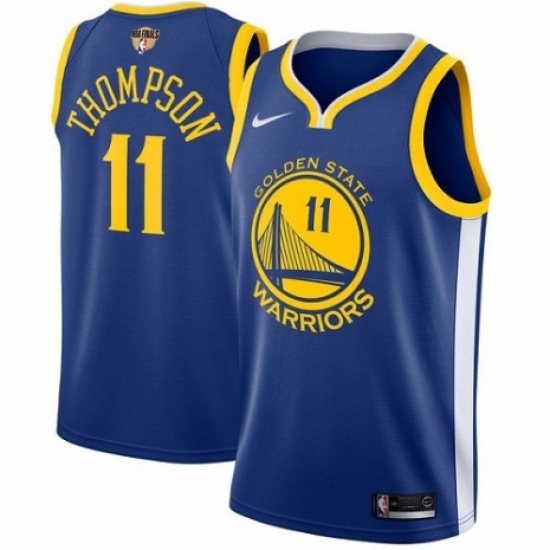 >Men's Nike Golden State Warriors #11 Klay Thompson Swingman Royal Blue Road 2018 NBA Finals Bound NBA Jersey - Icon Edition
