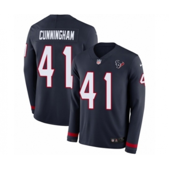 Men's Nike Houston Texans #41 Zach Cunningham Limited Navy Blue Therma Long Sleeve NFL Jersey