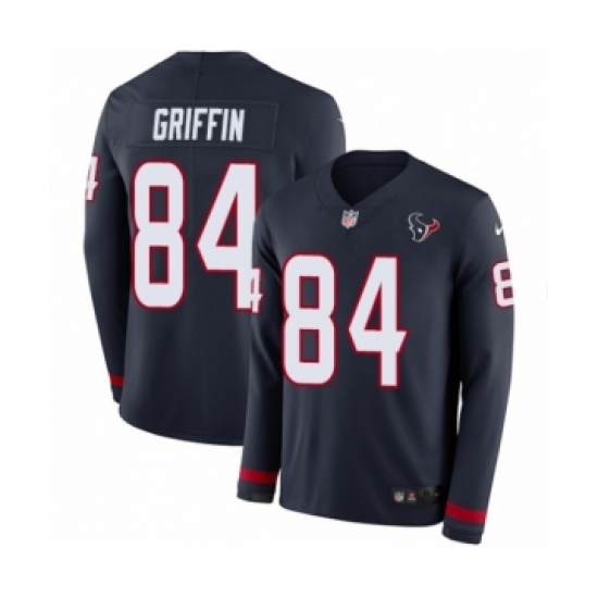 Men's Nike Houston Texans #84 Ryan Griffin Limited Navy Blue Therma Long Sleeve NFL Jersey