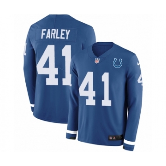 >Men's Nike Indianapolis Colts #41 Matthias Farley Limited Blue Therma Long Sleeve NFL Jersey
