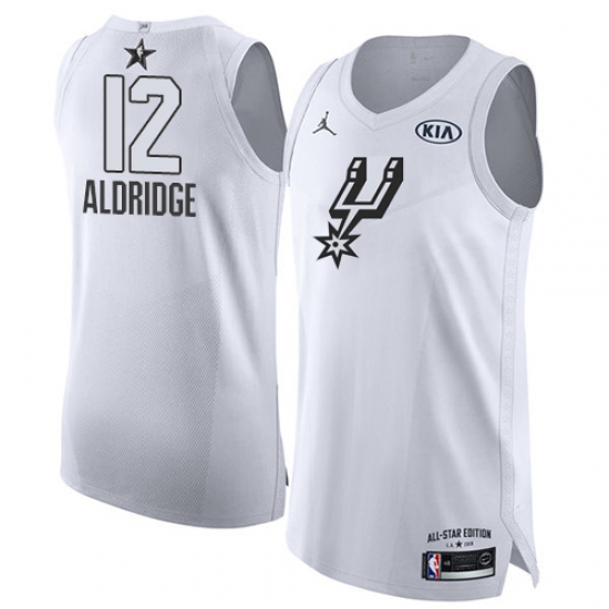 >Men's Nike Jordan San Antonio Spurs #12 LaMarcus Aldridge Authentic White 2018 All-Star Game NBA Jersey
