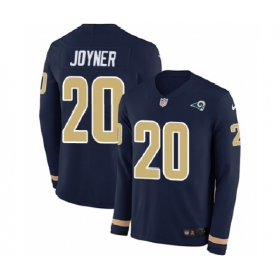 >Men's Nike Los Angeles Rams #20 Lamarcus Joyner Limited Navy Blue Therma Long Sleeve NFL Jersey