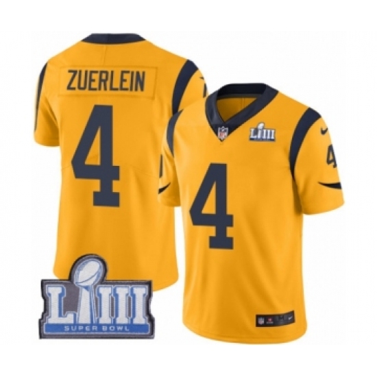 Men's Nike Los Angeles Rams #4 Greg Zuerlein Limited Gold Rush Vapor Untouchable Super Bowl LIII Bound NFL Jersey