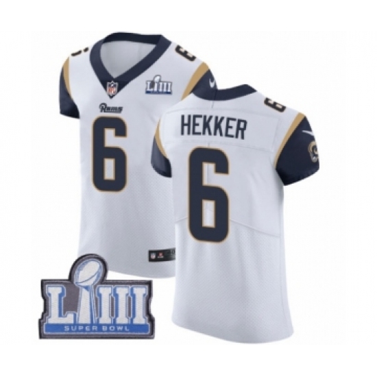 Men's Nike Los Angeles Rams #6 Johnny Hekker White Vapor Untouchable Elite Player Super Bowl LIII Bound NFL Jersey