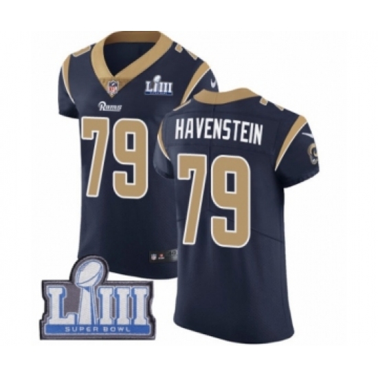 Men's Nike Los Angeles Rams #79 Rob Havenstein Navy Blue Team Color Vapor Untouchable Elite Player Super Bowl LIII Bound NFL Jersey