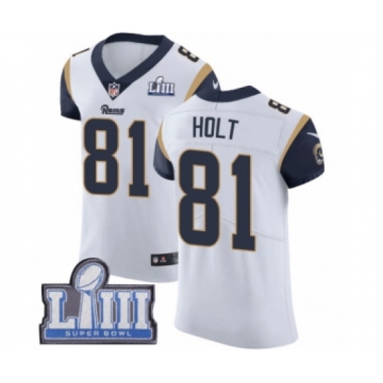 Men's Nike Los Angeles Rams #81 Torry Holt White Vapor Untouchable Elite Player Super Bowl LIII Bound NFL Jersey