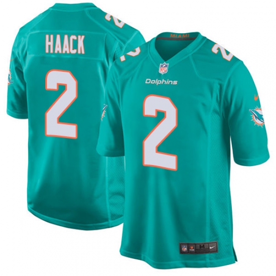 >Men's Nike Miami Dolphins #2 Matt Haack Game Aqua Green Team Color NFL Jersey