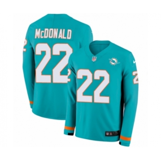 Men's Nike Miami Dolphins #22 T.J. McDonald Limited Aqua Therma Long Sleeve NFL Jersey