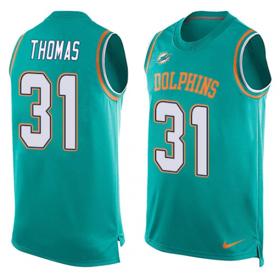 Home>NFL>Miami Dolphins>Michael Thomas>Men's Nike Miami Dolphins #31 Michael Thomas Limited Aqua Green Player Name & Number Tank Top NFL Jersey