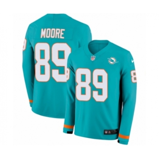 Men's Nike Miami Dolphins #89 Nat Moore Limited Aqua Therma Long Sleeve NFL Jersey