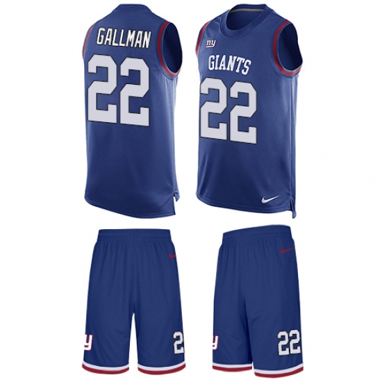 Home>NFL>New York Giants>Wayne Gallman>Men's Nike New York Giants #22 Wayne Gallman Limited Royal Blue Tank Top Suit NFL Jersey