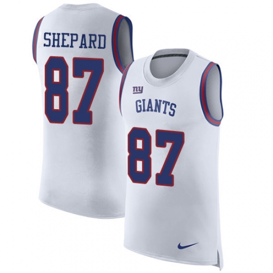 Men's Nike New York Giants #87 Sterling Shepard Limited White Rush Player Name & Number Tank Top NFL Jersey
