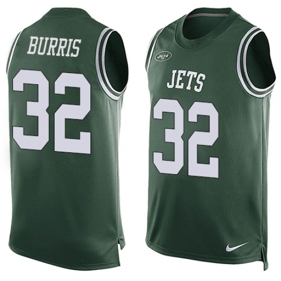 Men's Nike New York Jets #32 Juston Burris Limited Green Player Name & Number Tank Top NFL Jersey