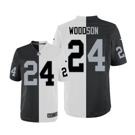 Home>NFL>Oakland Raiders>Charles Woodson>Men's Nike Oakland Raiders #24 Charles Woodson Elite Black/White Split Fashion NFL Jersey