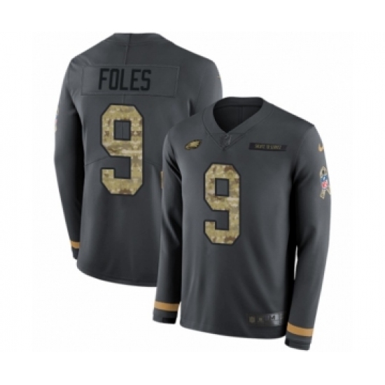 Men's Nike Philadelphia Eagles #9 Nick Foles Limited Black Salute to Service Therma Long Sleeve NFL Jersey