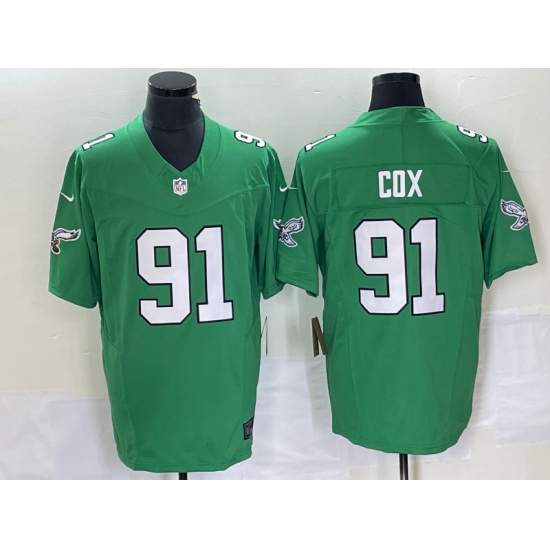>Men's Nike Philadelphia Eagles #91 Fletcher Cox Green 2023 F.U.S.E. Vapor Limited Throwback Stitched Football Jersey