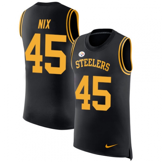 Home>NFL>Pittsburgh Steelers>Roosevelt Nix>Men's Nike Pittsburgh Steelers #45 Roosevelt Nix Limited Black Rush Player Name & Number Tank Top NFL Jersey