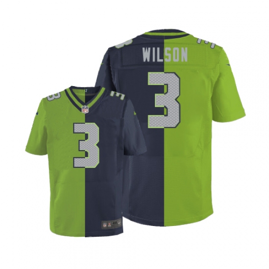 Men's Nike Seattle Seahawks #3 Russell Wilson Elite Navy/Green Split Fashion NFL Jersey
