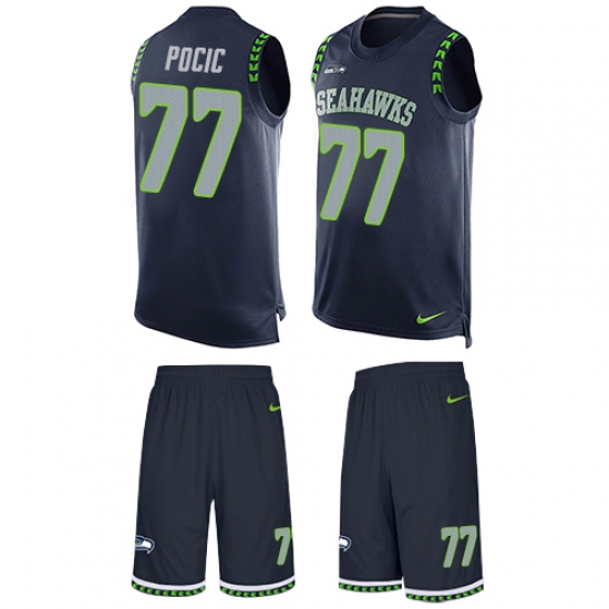 Home>NFL>Seattle Seahawks>Ethan Pocic>Men's Nike Seattle Seahawks #77 Ethan Pocic Limited Steel Blue Tank Top Suit NFL Jersey